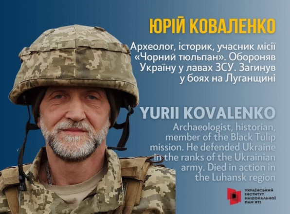 Нагадаємо: відомий в Україні і за кордоном археолог, вчений-дослідник Глухова, завідувач науково-дослідного відділу Національного заповідника «Глухів», пошуковець, волонтер місії «Чорний тюльпан», кандидат історичних наук Юрій Коваленко загинув у важких боях на Луганщині 14 березня 2023 року. Штаб-сержант Ю.Коваленко служив у 16 омпб 58 окремої мотопіхотної бригади імені гетьмана Івана Виговського.