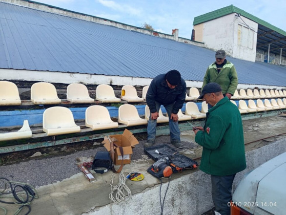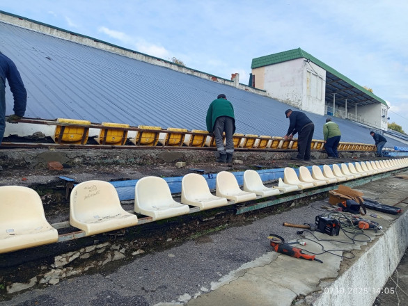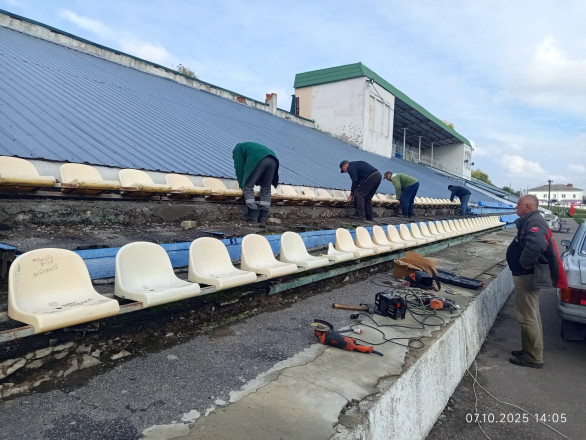 За дорученням Відділу молоді та спорту Глухівської міської ради працівники комунального підприємства «Житлово-комунальний центр» провели ремонт секцій для сидіння на міському стадіоні «Дружба».