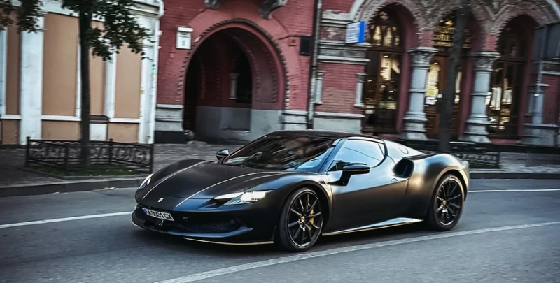 У центрі Києва сфотографували суперкар Ferrari 296 GTB 2023 року. Гібридне авто не лише розвиває 330 км/год, але й може проїхати 25 км на електротязі.