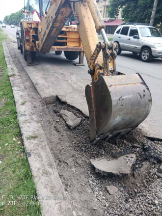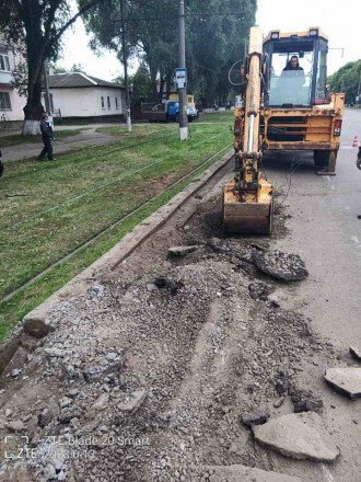 КП «Конотопське транспортне управління» проводить підготовчі роботи по укладанню плит на зупинках трамваю по Проспекту Миру.