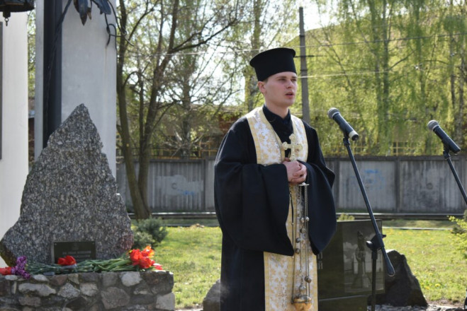 Священнослужитель Собору Різдва Пресвятої Богородиці Отець Назарій проголосив молитву за упокій душ Героїв Чорнобиля і дав напутні слова про пам’ять і вдячність поколінь.