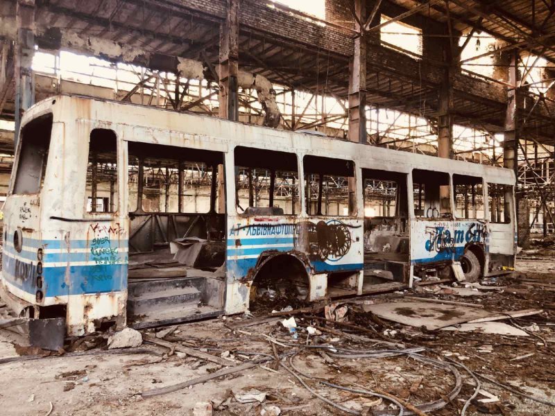 Судячи з фото, територія заводу виглядає так, наче там відбувались бойові дії.