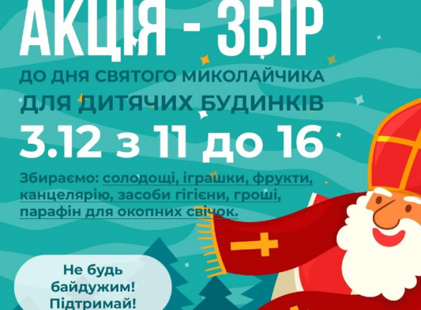 До Дня Святого Миколая в неділю, 3 грудня, в середмісті Сум волонтери збиратимуть допомогу для вихованців сиротинців і захисників.