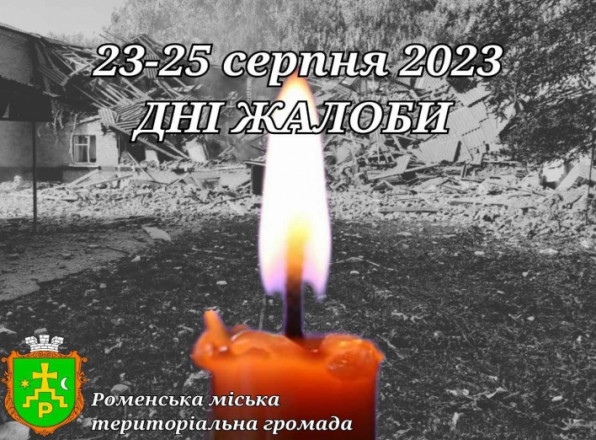 Відповідно до розпорядження міського голови від 23.08.2023 № 110- ОД, 23-25 серпня 2023 року оголошено Днями жалоби на території Роменської міської територіальної громади з метою вшанування пам’яті загиблих внаслідок влучання російського БпЛА типу «Shahed» у навчальний заклад.