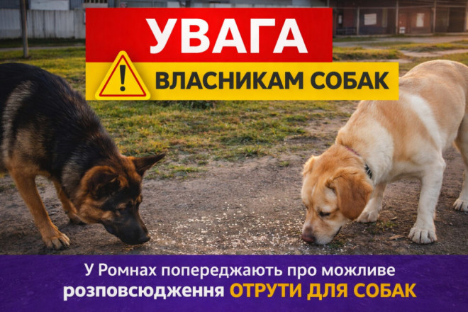 У Ромнах з’явилася тривожна інформація про можливе розсипання отрути для собак, пишутьна сторінці animals_romny.