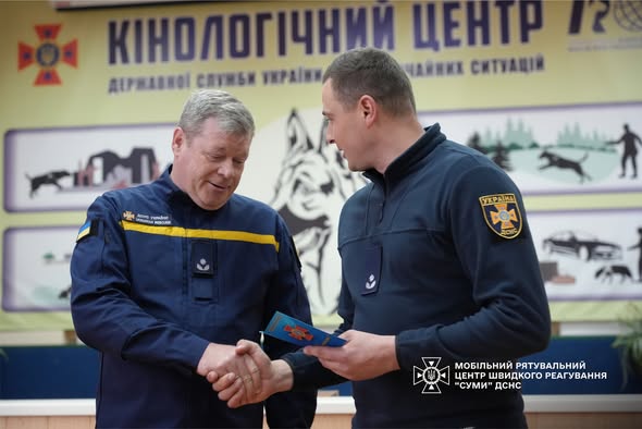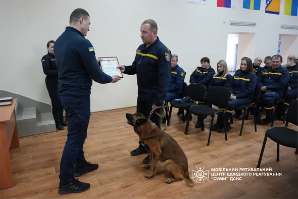У День кінолога в Мобільному рятувальному центрі швидкого реагування «Суми» ДСНС України відбулося урочисте нагородження найкращих фахівців кінологічної служби.