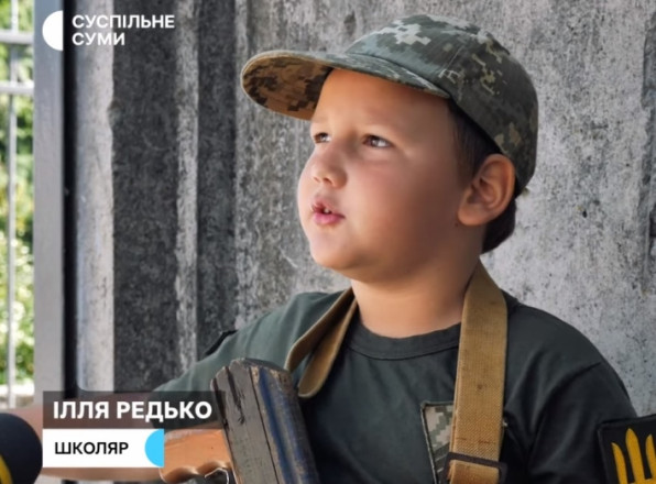 Як повідомляє Цензор.НЕТ, маленькому воїнові, який справно виконує свої обов'язки, вже видали форму і навчальний автомат, йдеться в сюжеті Суспільного.