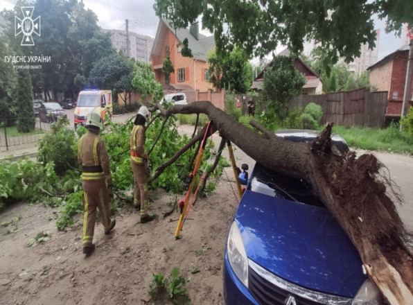 На місце виклику прибуло відділення аварійно-рятувальної частини. За допомогою бензопили рятувальники розрізали дерево та звільнили легковик.