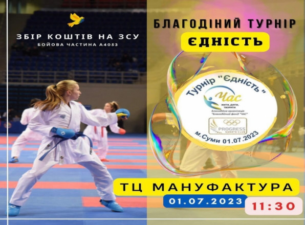 1 липня карате клуб «Progress» разом з благодійною організацією «Благодійний фонд «Час», організовує благодійний турнір.