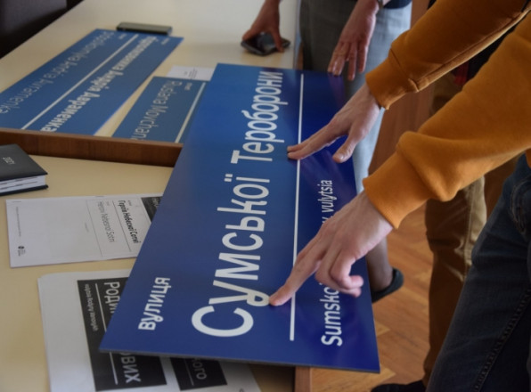 Нагадаємо, торік восени у рамках дерусифікації в Сумській міській ТГ змінили назви 211 проспектів, площ, вулиць, провулків та проїздів. Тож, постало питання розроблення рекомендацій щодо норм для виготовлення адресних табличок: як вони мають виглядати, який мати розмір та спосіб кріплення, де їх розміщувати тощо, адже адресні покажчики з актуальною інформацією та дизайном, легким для сприйняття, потрібні для якісної навігації в місті.