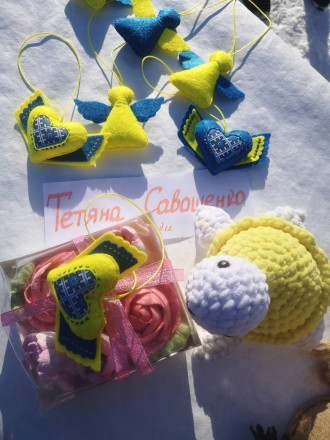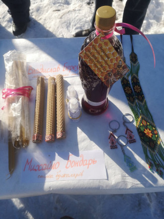 Локальні умільці представили крафтові вироби, що стали основою збору коштів. Тетяна Рєпа демонструвала витончені гердани з бісеру, а Євген Кулик привіз дерев’яні іграшки, які стали головним інтересом для наймолодших відвідувачів. Любов Кулик презентувала авторські жіночі гамани, виконані у техніці вибійки. Свої роботи також надали Тетяна Євтушенко-Савощенко, Тетяна Мацуй та Вікторія Михайленко, чиї патріотичні ангелики та серця купували як обереги. Бджільництво краю представляв Владислав Березний із медово-восковою продукцією.