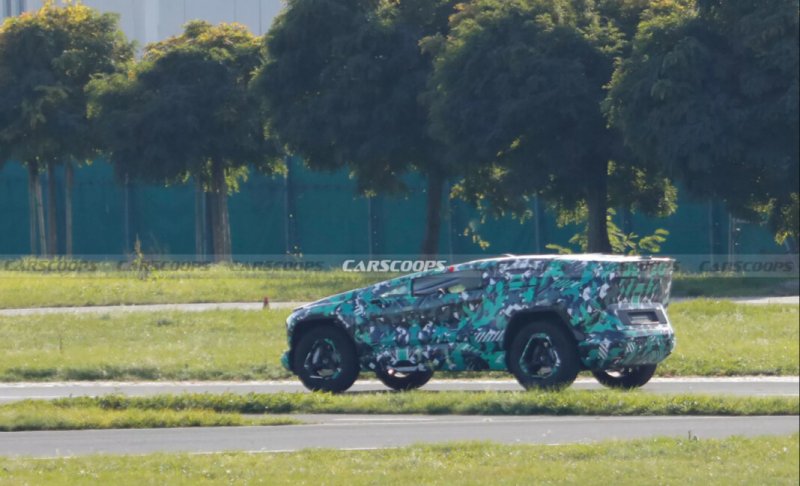 Серед інших деталей — трикутні колеса, масивні пороги, чорний пластиковий обвіс і, ймовірно, двері типу «крило чайки» або «метелик» зі скляними панелями. Також помітні тонкі світлодіодні фари, цифрові бічні дзеркала та кутова задня частина з нестандартною кришкою багажника.
