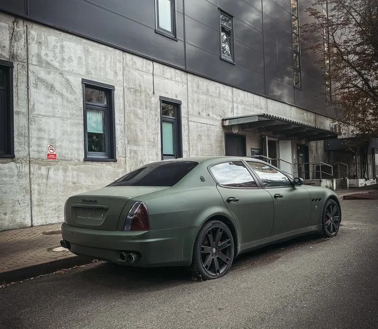 Крім того, седан Maserati Quattroporte Sport GT отримав особливі 20-дюймові диски та чорний декор на кузові. В оздобленні салону використали шкіру та карбон. Конкретно це авто вирізняється зеленим матовим забарвленням.