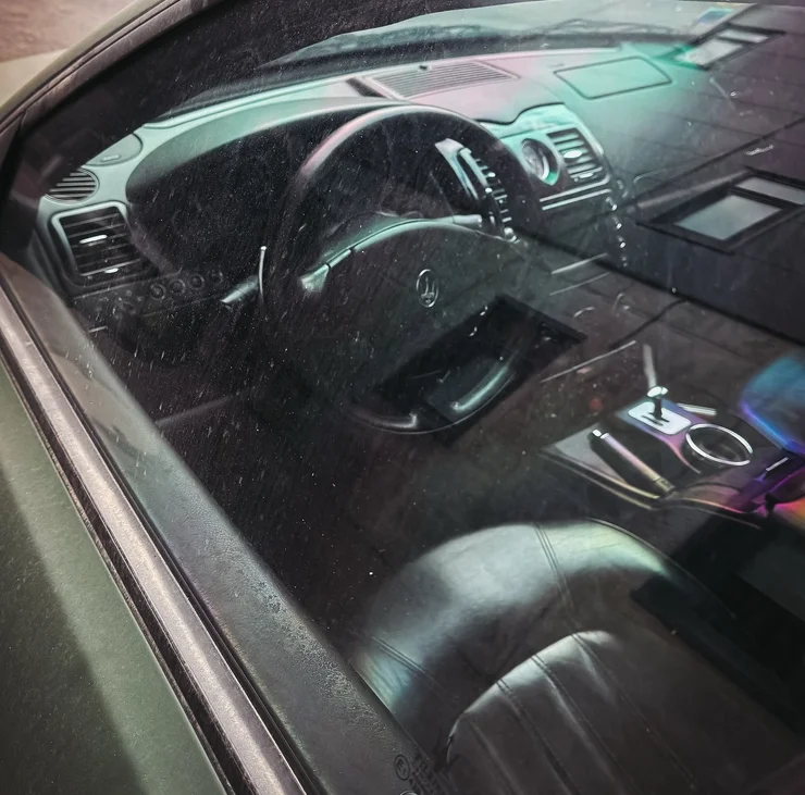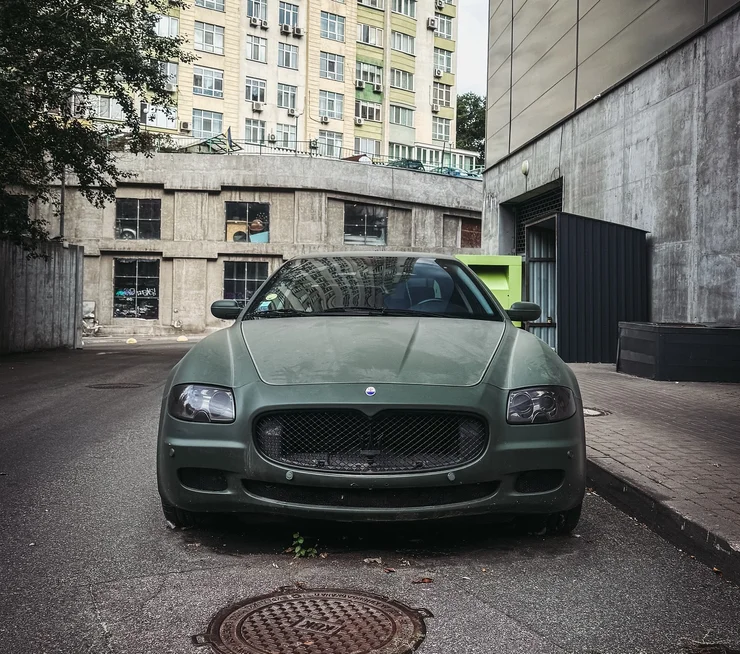Судячи зі стану Maserati Quattroporte, його давно не експлуатували. Седан покритий шаром бруду, його шини приспущені, а на кузові видно дрібні пошкодження. З автомобіля зняли номери.
