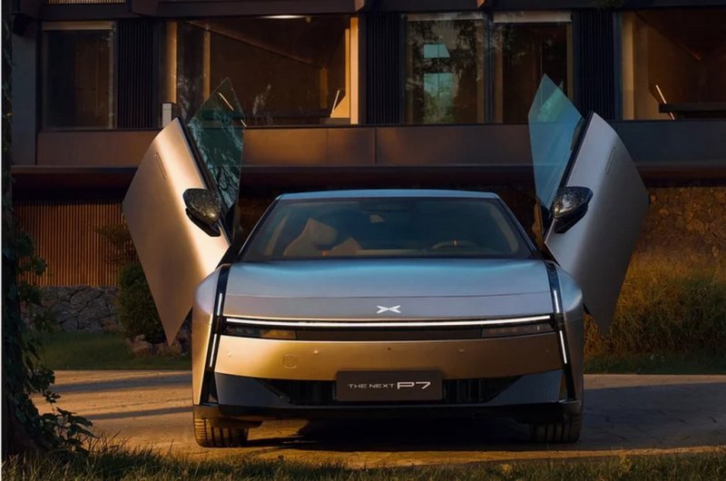 Седан Xpeng P7 сягає 5 м завдовжки і вирізняється футуристичним обтічним дизайном із тоненькими діодними фарами та ліхтарями. Крім того, авто має «гільйотинні» двері (як у Lamborghini) та висувне антикрило.