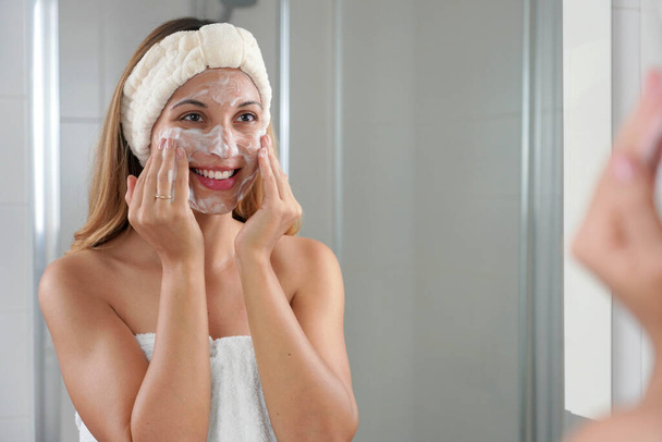 Якщо розглядати пінку або гель для вмивання, їх потрібно наносити пальцями на вологу шкіру і добре спінити, уникаючи потрапляння в очі. Потім змити теплою водою.