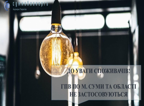 23 лютого відключення електроенергії за графіками по місту Суми та області не планується.